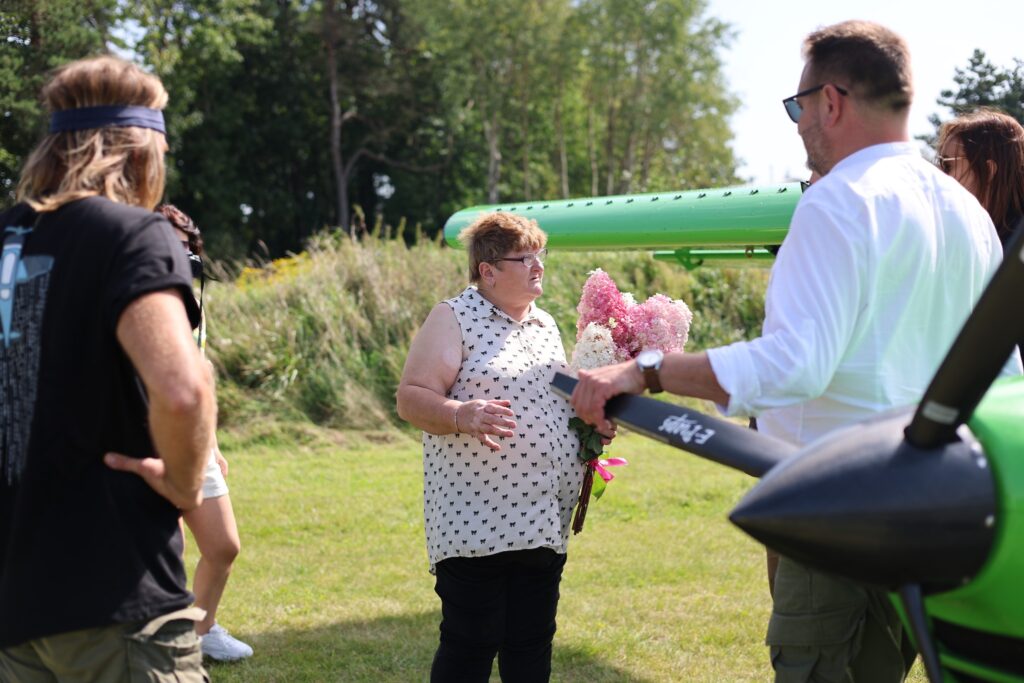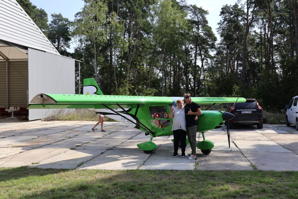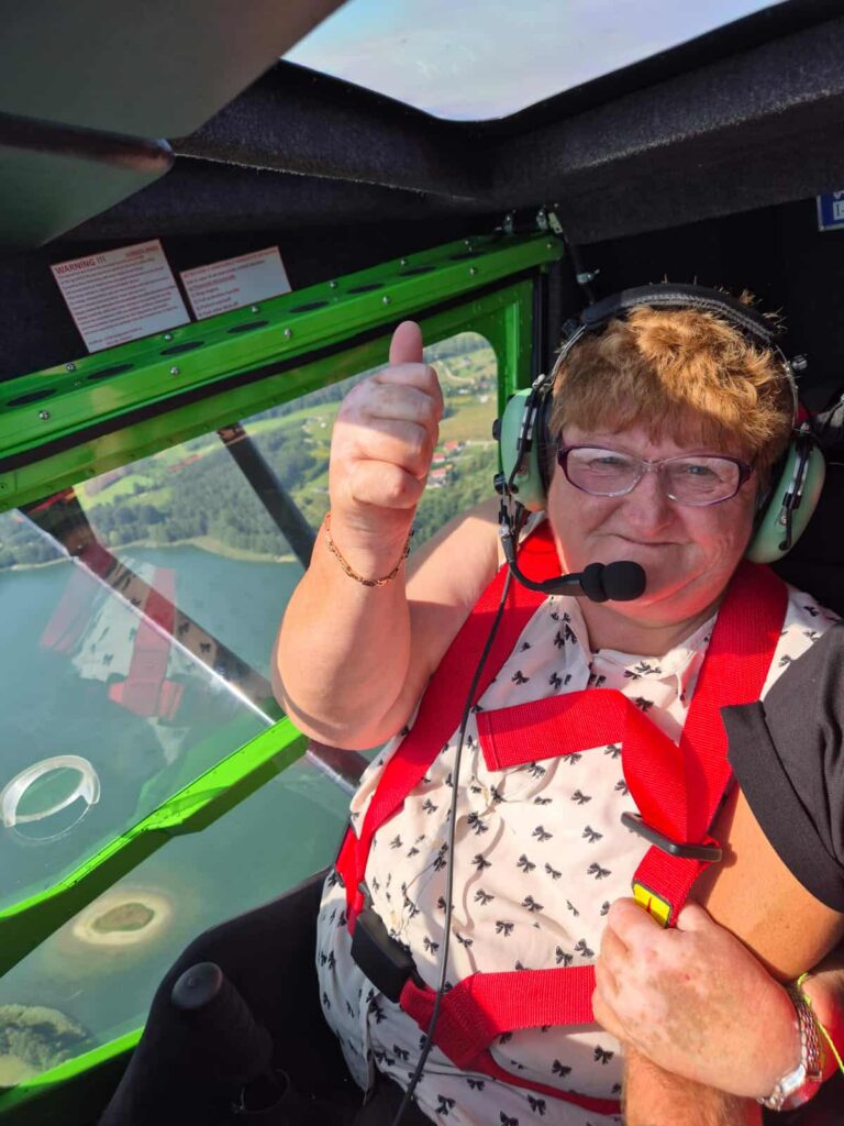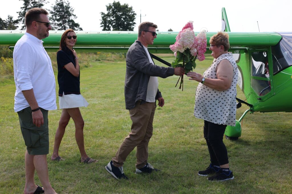 Marzenie Pani Sabiny o podniebnym locie się spełniło! Nasza uczestniczka wypowiedziała te słowa blisko 2 lata temu, na planie filmu „Jesteśmy Razem”, aż nareszcie w piątek wzbiła się w powietrze awionetką Savannah SR. W towarzystwie pilota, Pana Darka, który służył (dosłownie!) pomocną dłonią zwiedziła okolice Mrągowa i Mikołajek. Na pytanie jak wygląda świat z lotu ptaka Pani Sabina mówi, że ludzie są mali jak mrówki, a widoki przepiękne. Dziękujemy sponsorowi przelotu Jacek Gosk, który spełnił marzenia naszej uczestniczki oraz Lotnik Training – Szkoła lotnicza w Nikutowie za niezapomniane wspomnienia.