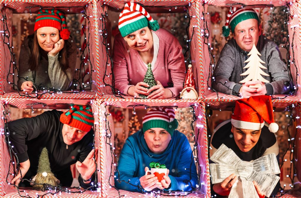 Święta coraz bliżej, a my już daliśmy się porwać ich wyjątkowej atmosferze! W tym roku nasze przygotowania są wyjątkowo… psotne! Postanowiliśmy wcielić się w rolę wesołych skrzatów, robiliśmy sobie żarty, śmialiśmy się do łez i po prostu cieszyliśmy się sobą nawzajem. Efektem są wesołe kolaże z naszej przedświątecznej sesji oraz fotki „z ukrycia”, które idealnie oddają prawdziwe emocje, spontaniczność i radość ze wspólnie spędzonych chwil. Niech ten świąteczny czas będzie pretekstem do zwolnienia, śmiechu i bycia razem. Zachęcamy Was z całego serca, twórzcie takie wspomnienia, łapcie chwile na zdjęciach i celebrujcie rodzinne momenty, nawet te najbardziej nieidealne, bo właśnie one są najpiękniejsze.